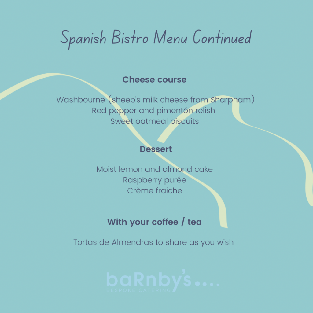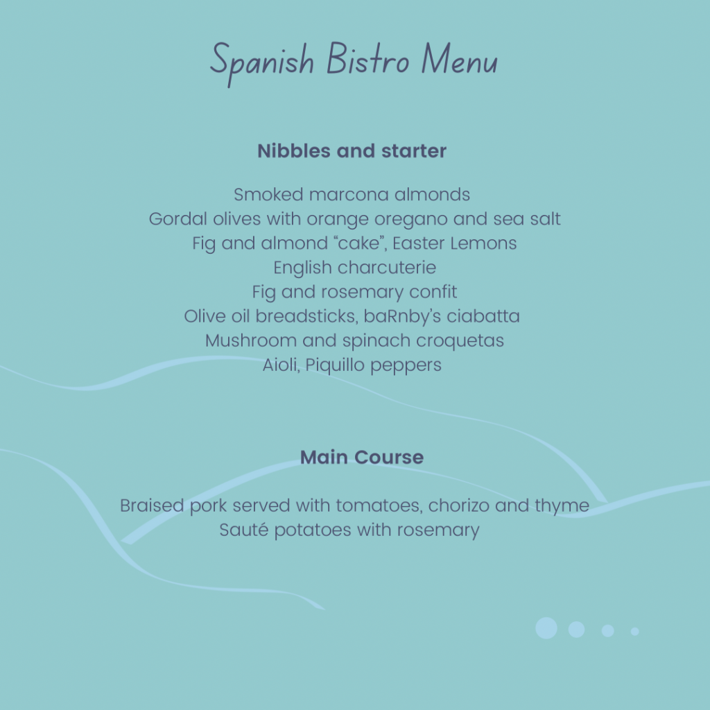 The menu for my Spanish Bistro Night on 11 September 2021
